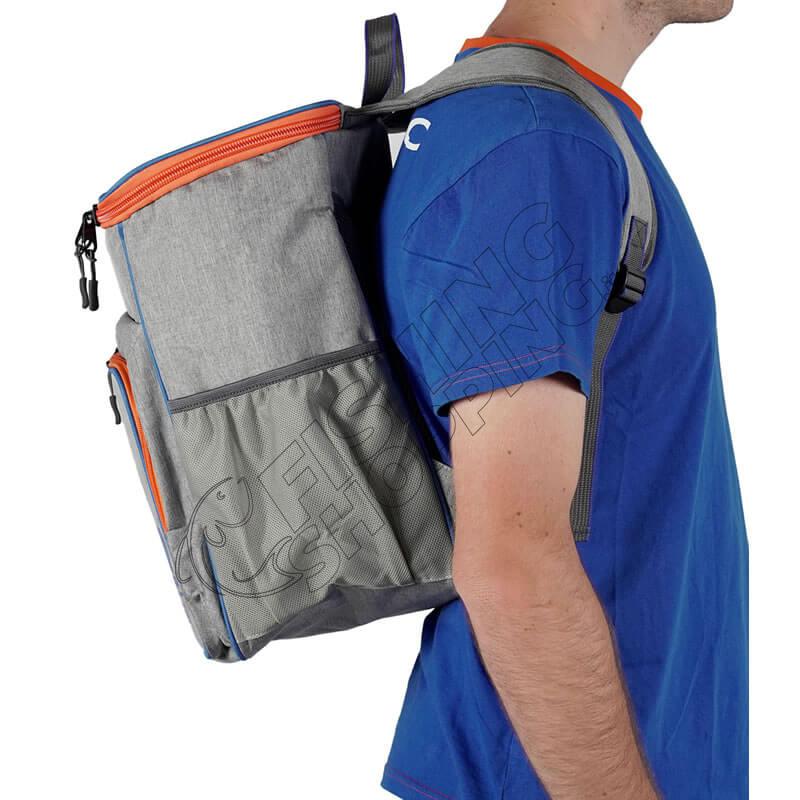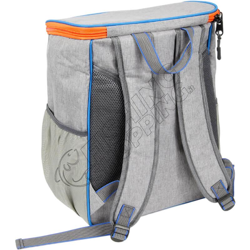 Vano principale capienteCerniere e cursori in plastica antishockTasche laterali in tessuto a reteAmpia tasca frontale con taschino porta documentiSpallacci regolabiliManiglia superiore in corduraImbottiture laterali traspiranti sul pannello posterioreIntercapedine imbottita a protezione del vano principale e tasca frontaleIdeale per pesca e attività outdoor