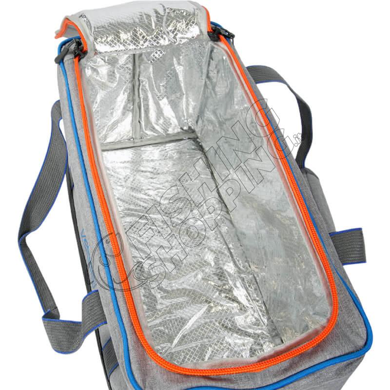 Doppia maniglia superiore imbottitaCerniere e cursori in plastica antishockFondo gommato resistente a sporco e umiditàCapienza ideale per oggetti lunghi, scatole, esche, lattine, alimenti e bottiglie fino a 2LStruttura robusta per utilizzo outdoorMateriale isolante interno di elevata qualità