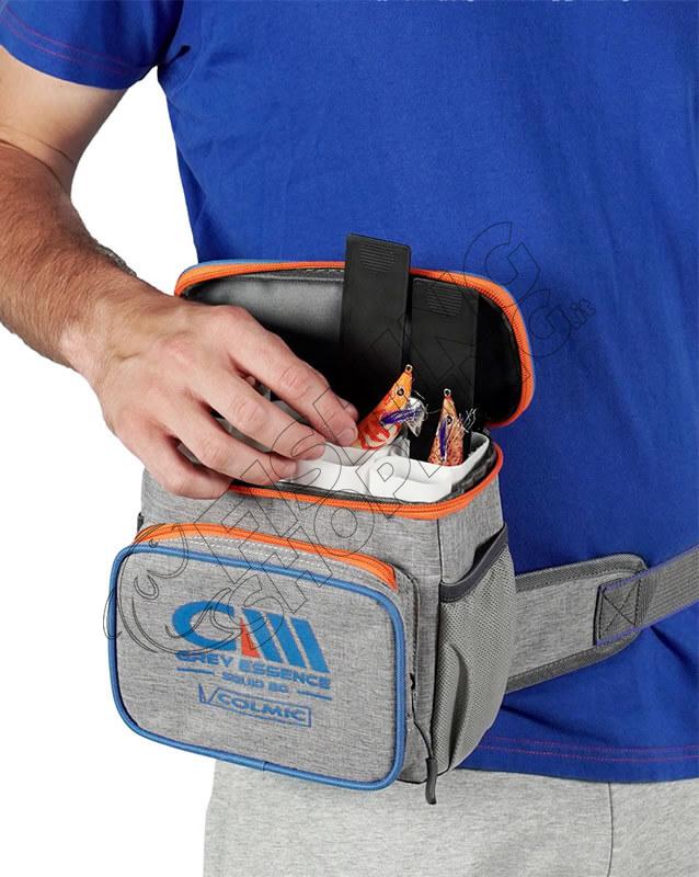 Colmic Grey Essence SQUID 80 è un marsupio tecnico da pesca ai cefalopodi, progettato per offrire massima organizzazione, drenaggio rapido e accesso immediato agli artificiali durante la pesca a seppie, calamari e totani. Indossato comodamente in vita, consente di avere sempre a portata di mano egi e accessori indispensabili.