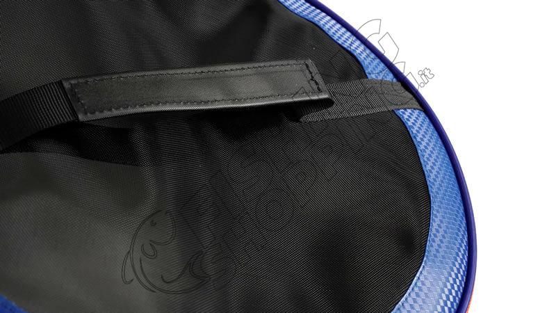 Sempre nella parte superiore è presente una maniglia in cordura, resistente e comoda per il trasporto a mano.