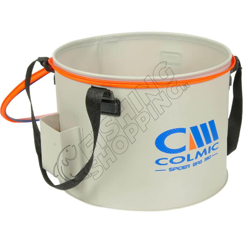 Colmic PVC Spider Bag 350 è un contenitore circolare in PVC di grandi dimensioni, progettato specificamente per il mantenimento delle esche vive sia nella pesca da riva sia da natante.