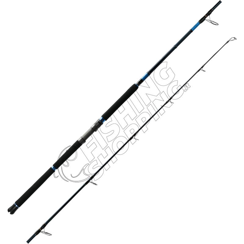 Blank in carbonio ad alto moduloStruttura 1+1 per una curvatura progressivaPorta mulinello FujiAnelli SeaGuide New Concept con inserti in zirconiaTelai in acciaio inox SS316Gimbal in gomma antiscivoloAzione potente per tonni di tutte le dimensioniIdeale per la pesca in mare aperto