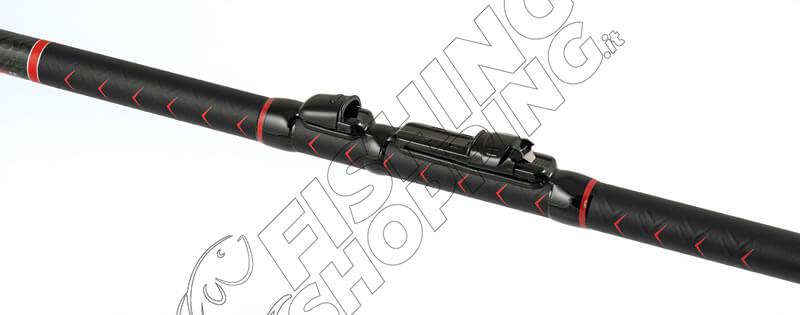L'ergonomia è studiata nei minimi dettagli, con una placca porta mulinello misura 6 equipaggiata con robuste guancette in acciaio rivestite in gomma per massima stabilità e durata. Il comfort durante l'utilizzo è garantito dall'impugnatura rivestita in materiale soft rubber che offre un'ottima presa anche in condizioni di umidità o con mani bagnate. Il design è completato da un elegante tappo in alluminio con vite interna che migliora l'equilibrio della canna e ne facilita la manutenzione.
