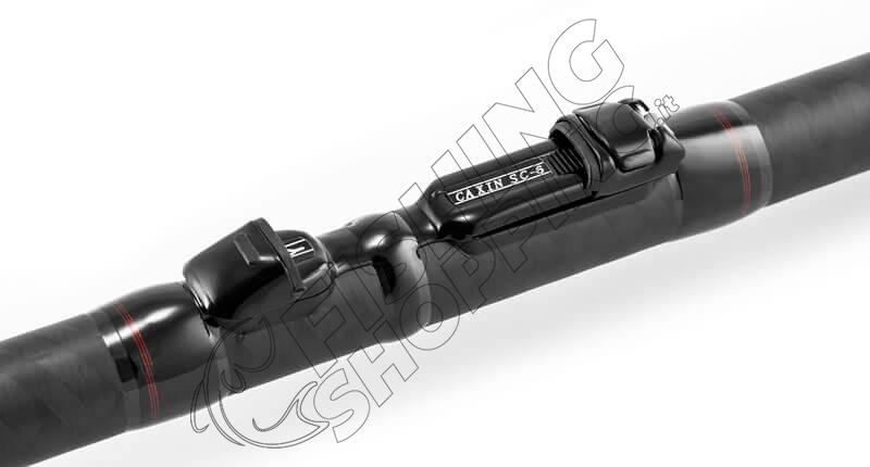 Il manico presenta un rivestimento antiscivolo pratico e lavabile, con zona portamulinello rinforzata in carbonio anti-ovalizzazione. Il portamulinello PacBay Caxin misura 6, in acciaio inox con guance in gomma, assicura un serraggio stabile. Completano l’allestimento la torretta distanziatrice interna in EVA e il tappo posteriore in alluminio a vite con cup in EVA arrotondato, elegante e protettivo.
