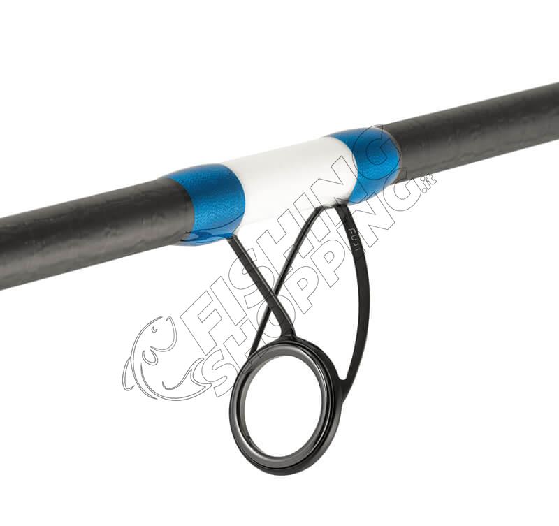 Gli anelli Fuji KW con pietra Aluminium Oxide, fissati con doppie legature, offrono una guida fluida della lenza e una resistenza alla corrosione e alla salsedine. La grip inferiore antiscivolo con nervatura a rilievo e pomello in gomma garantisce una presa sicura e confortevole durante il lancio.