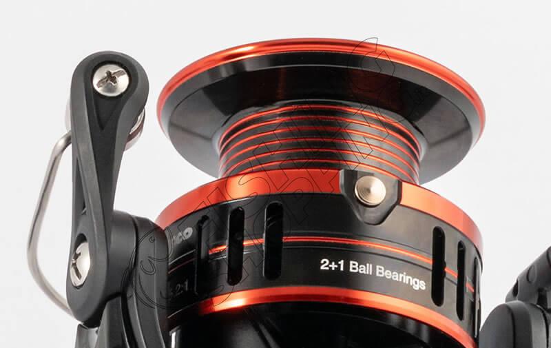 Il sistema di rotazione si basa su 2 cuscinetti Long Life System e 1 cuscinetto a rulli unidirezionale, tutti montati sull’albero centrale, soluzione che migliora in modo concreto la scorrevolezza del recupero e la stabilità meccanica nel tempo.L’antiritorno infinito One Way Clutch elimina qualsiasi gioco della manovella, garantendo controllo immediato durante il combattimento.
