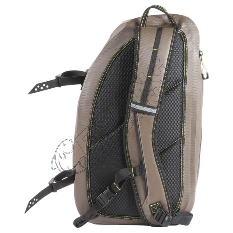 Capacità 20 litri: Compatto, leggero e ideale per l’attrezzatura quotidianaApertura laterale con cerniera a tenuta stagna: Accesso rapido e protezione totaleSpallaccio singolo imbottito e regolabile: Per un trasporto comodo e bilanciatoAsole elastiche esterne e doppie fascette regolabili laterali: Per fissare canne, ombrelli o attrezziTasca porta forbici/pinze dedicata: Con chiusura a velcro e fascetta di sicurezzaDoppie cerniere con guarnizioni gommate: Garantiscono tenuta stagna e durabilità